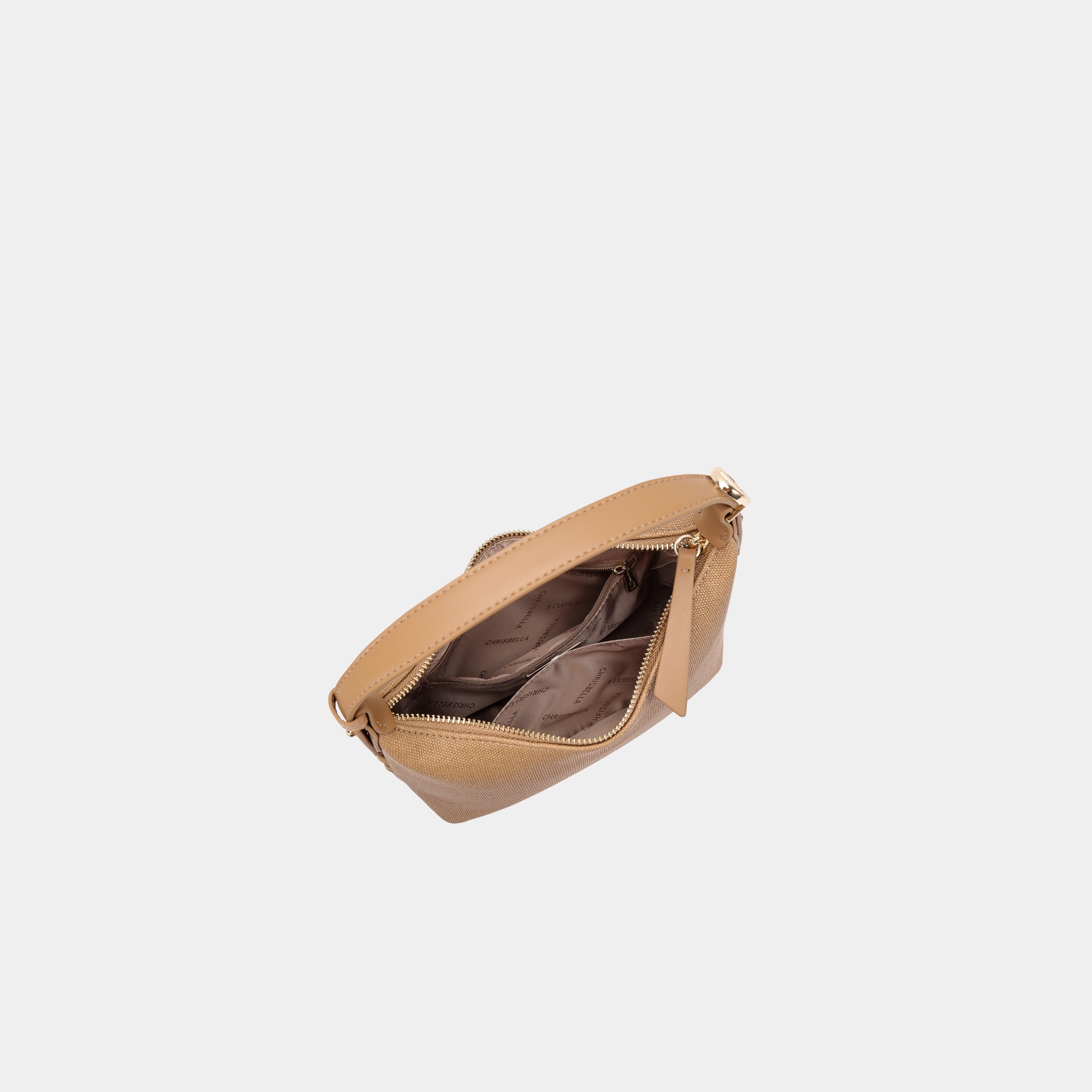 • تضيف الأجزاء المعدنية الذهبية على الجزء العلوي من حقيبة كرسيبيلا لمسة جمالية رائعة، كما أنها تعكس الأناقة والتميز.