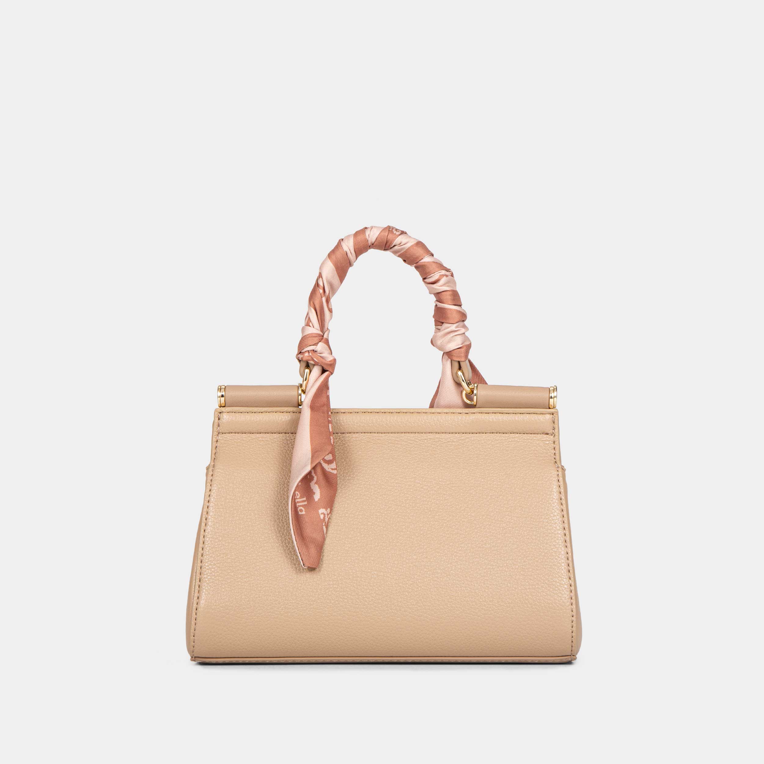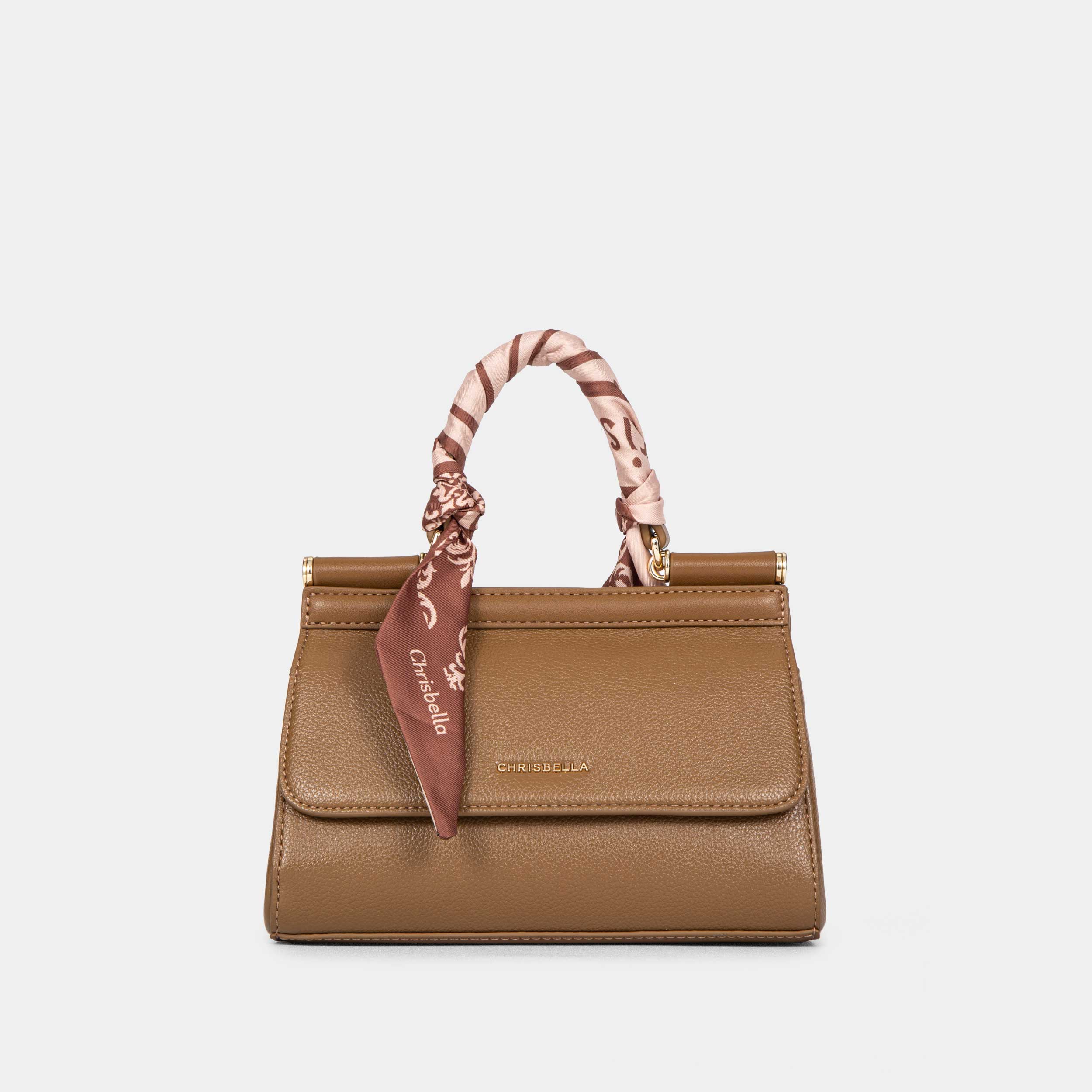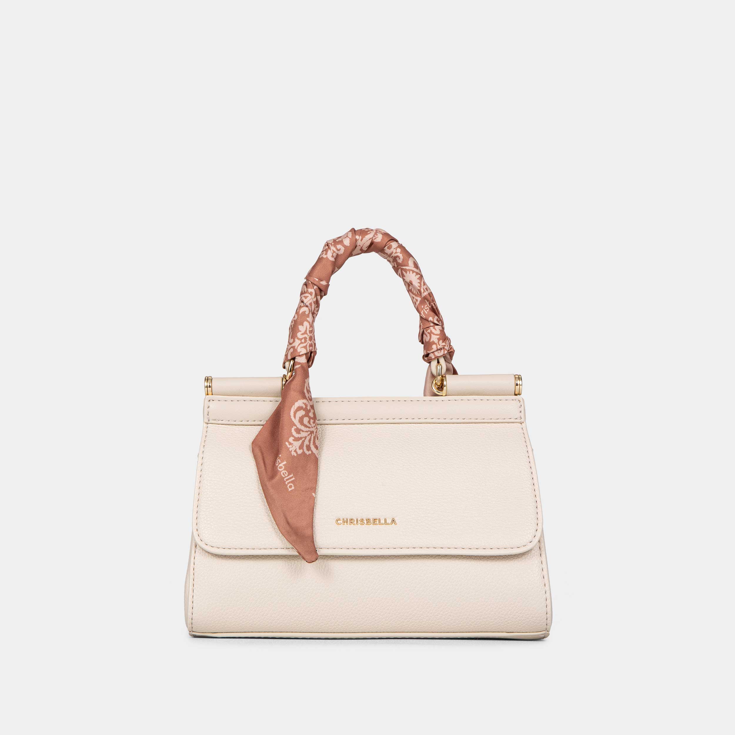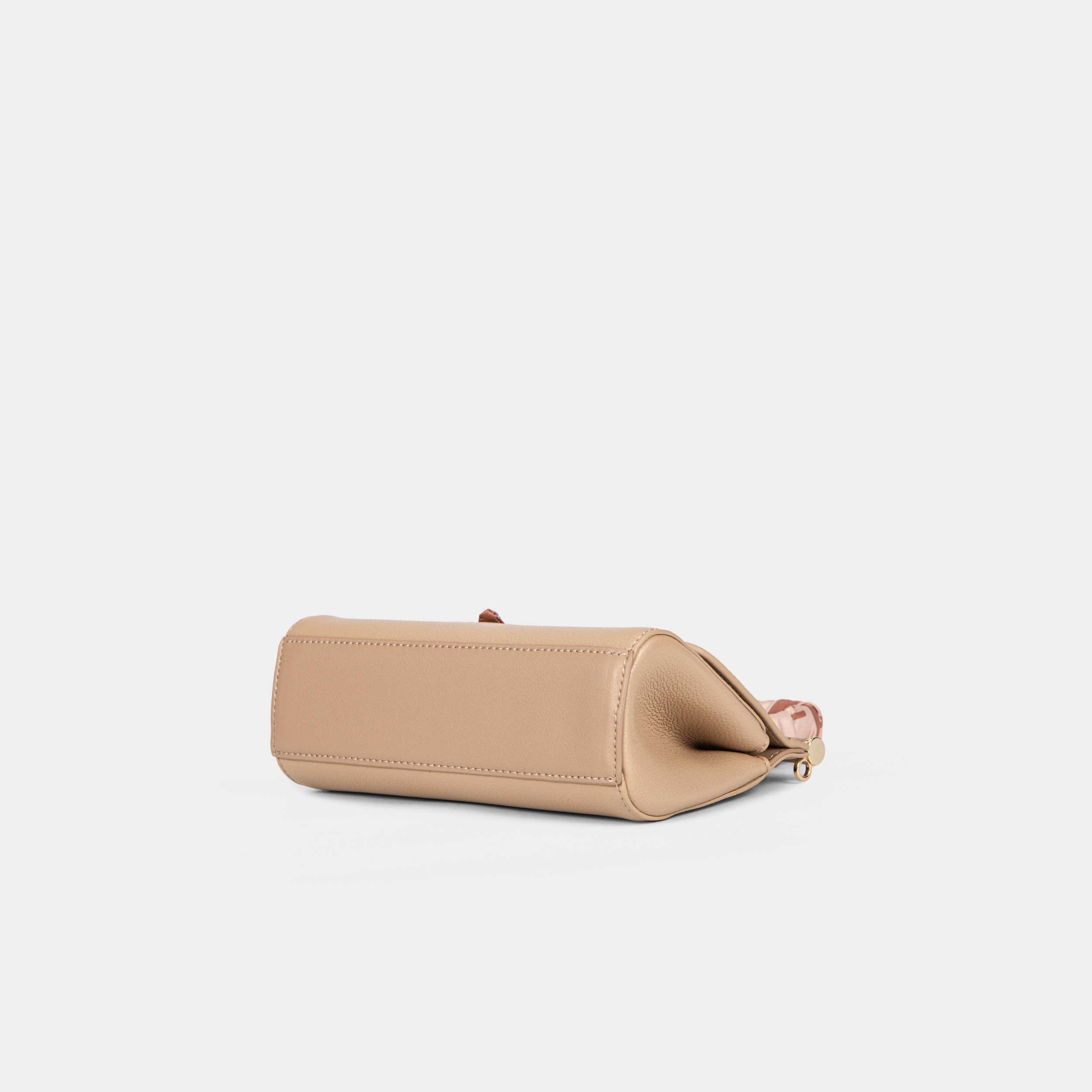 - 1. الحقيبة الكلاسيكية (The Classic Structure) قطعة فنية بتصميم هندسي متقن يحافظ على رونقه مع مرور الوقت. تتميز بوشاح حريري فاخر يلتف حول المقبض ليضفي لمسة من الأنوثة الراقية والانسيابية. صممت لتكون رفيقتك المثالية في المناسبات الرسمية واليومية بمساحة رحبة وعملية.