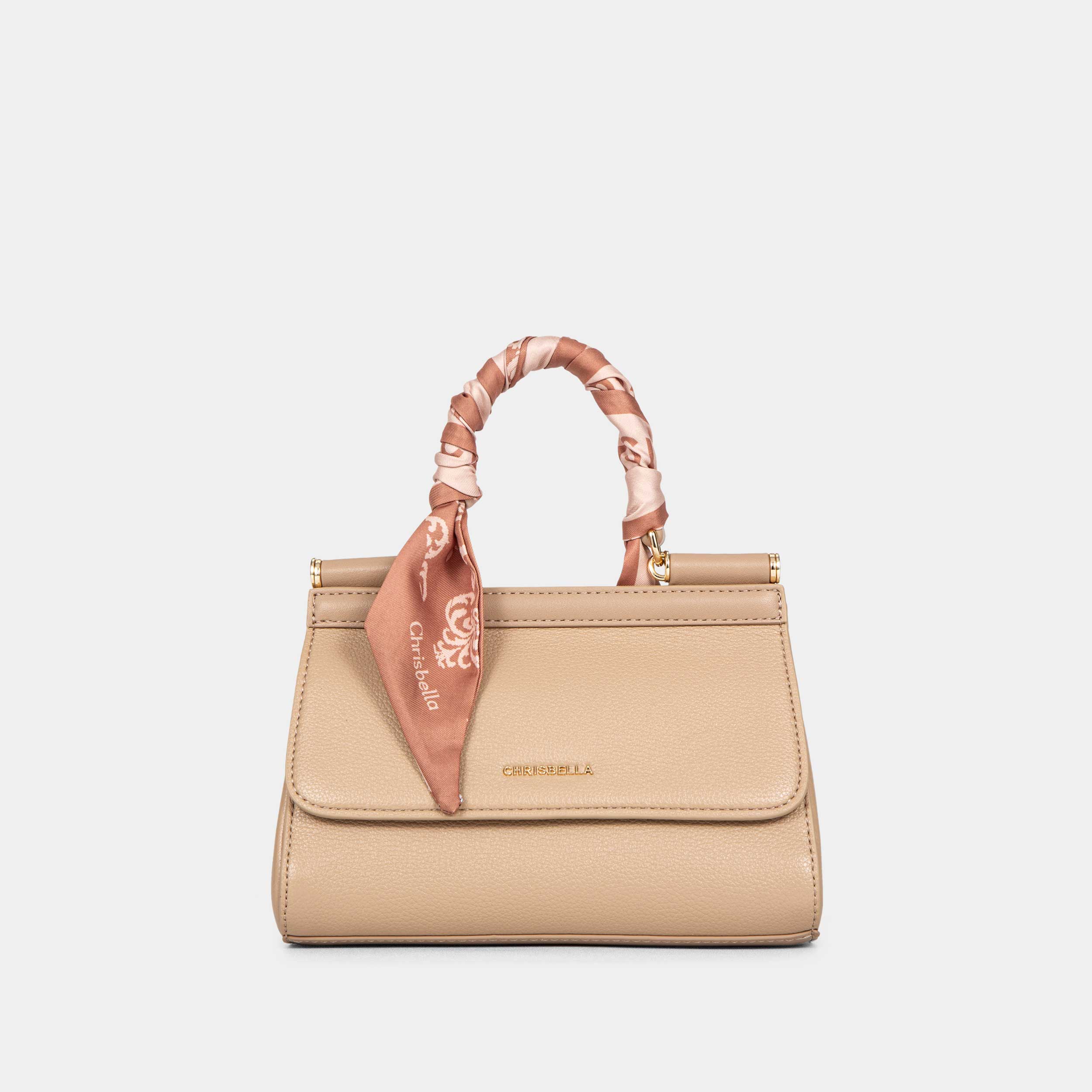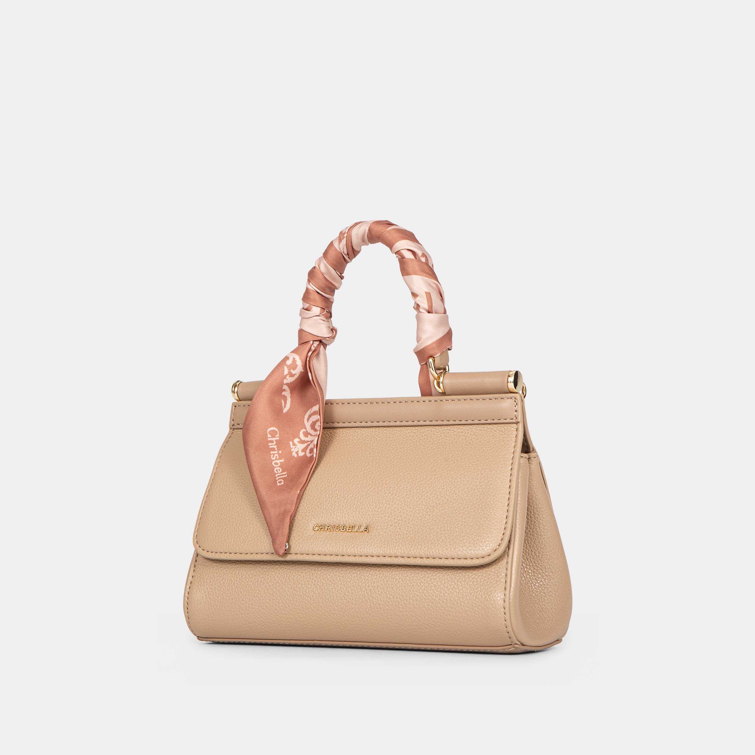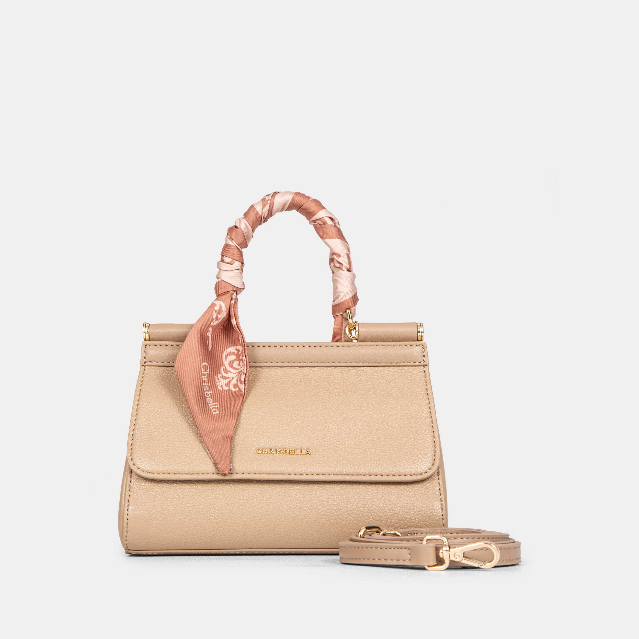 - 1. الحقيبة الكلاسيكية (The Classic Structure) قطعة فنية بتصميم هندسي متقن يحافظ على رونقه مع مرور الوقت. تتميز بوشاح حريري فاخر يلتف حول المقبض ليضفي لمسة من الأنوثة الراقية والانسيابية. صممت لتكون رفيقتك المثالية في المناسبات الرسمية واليومية بمساحة رحبة وعملية.