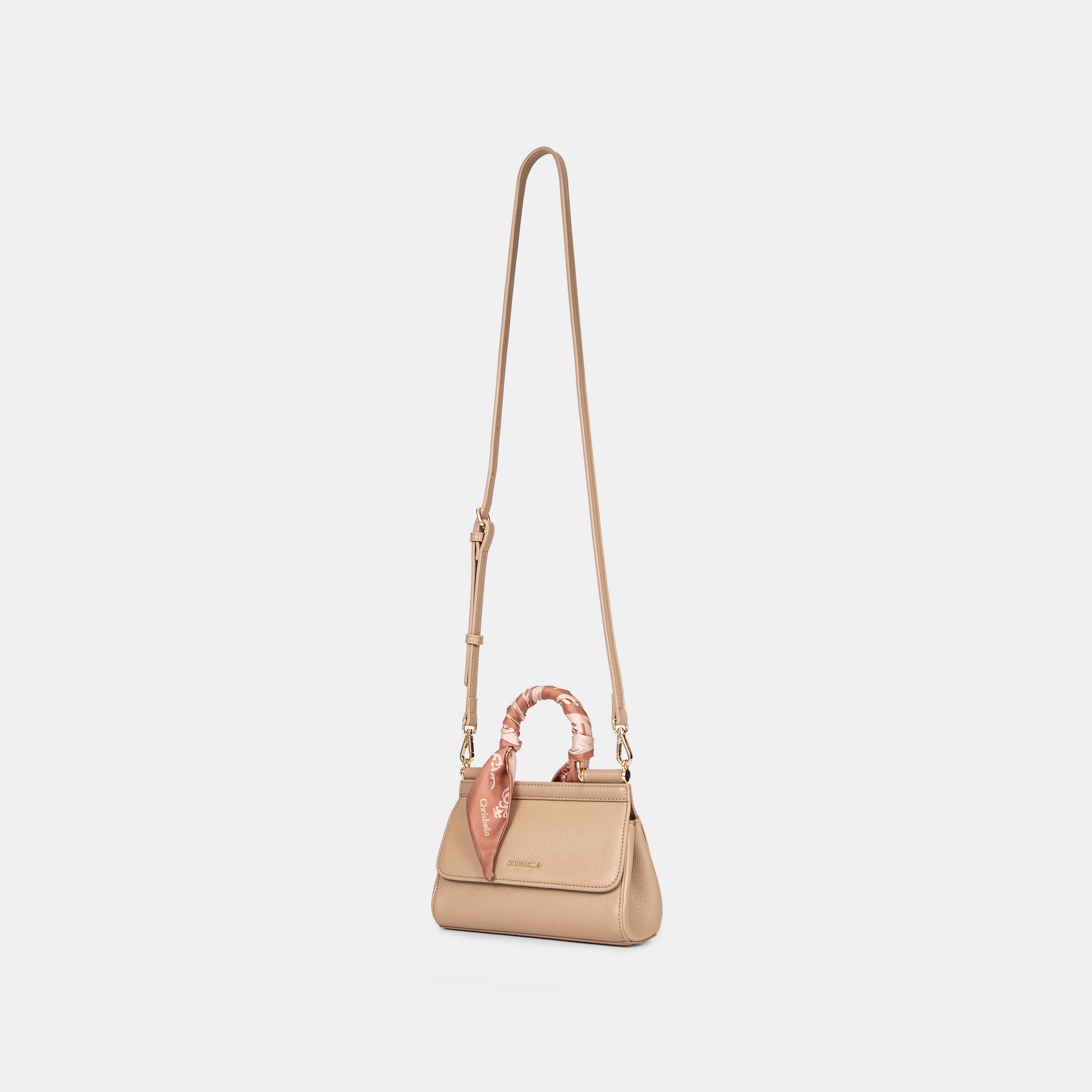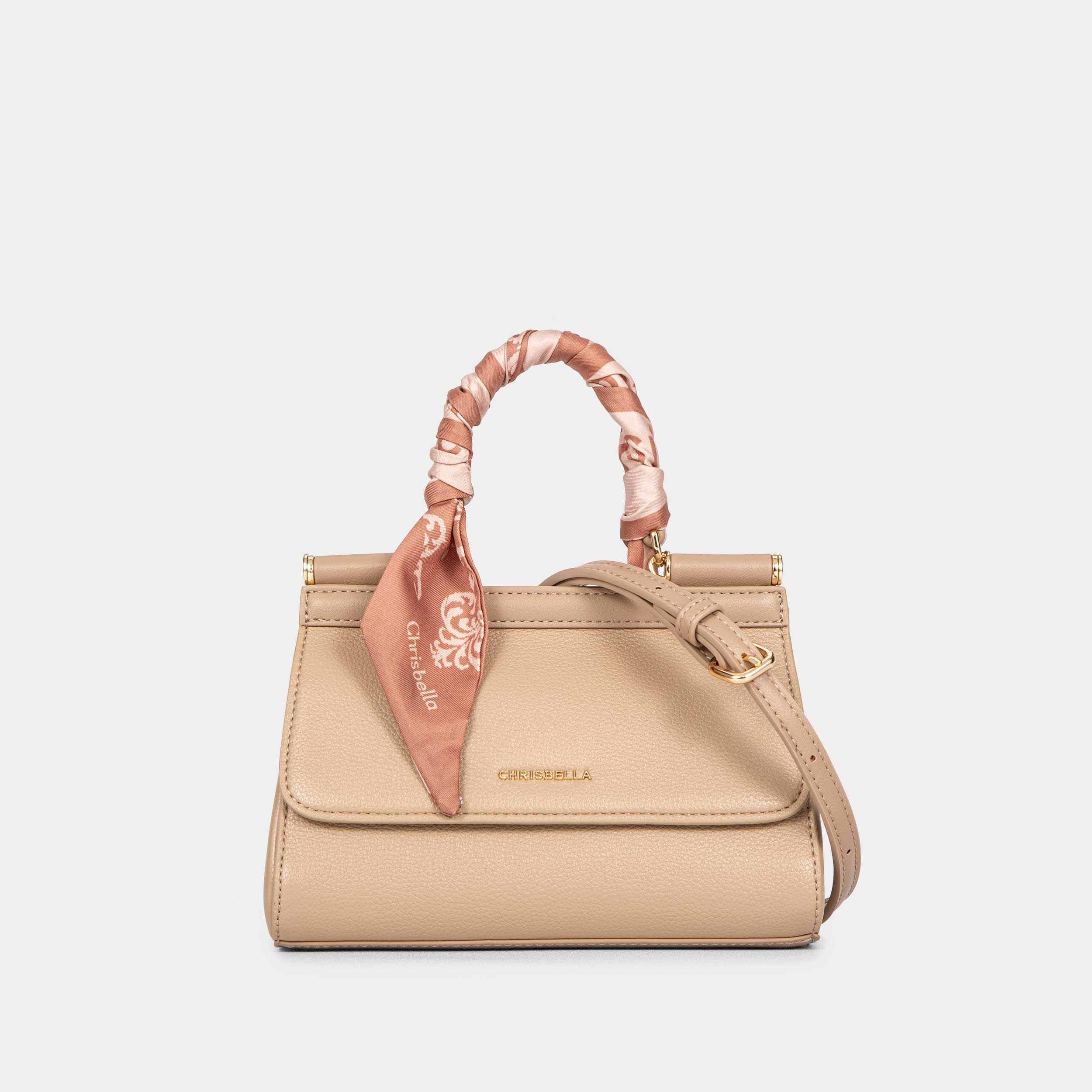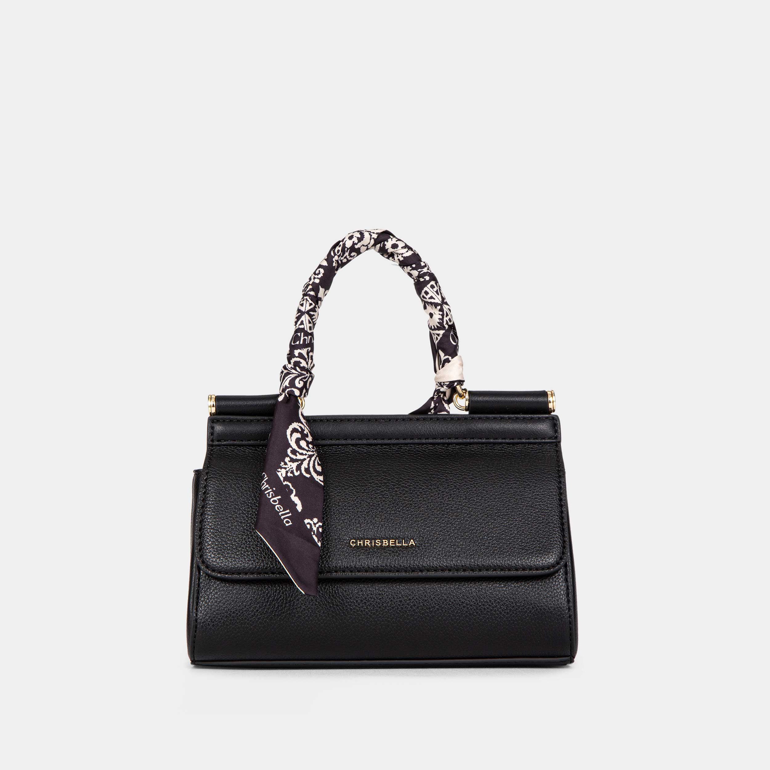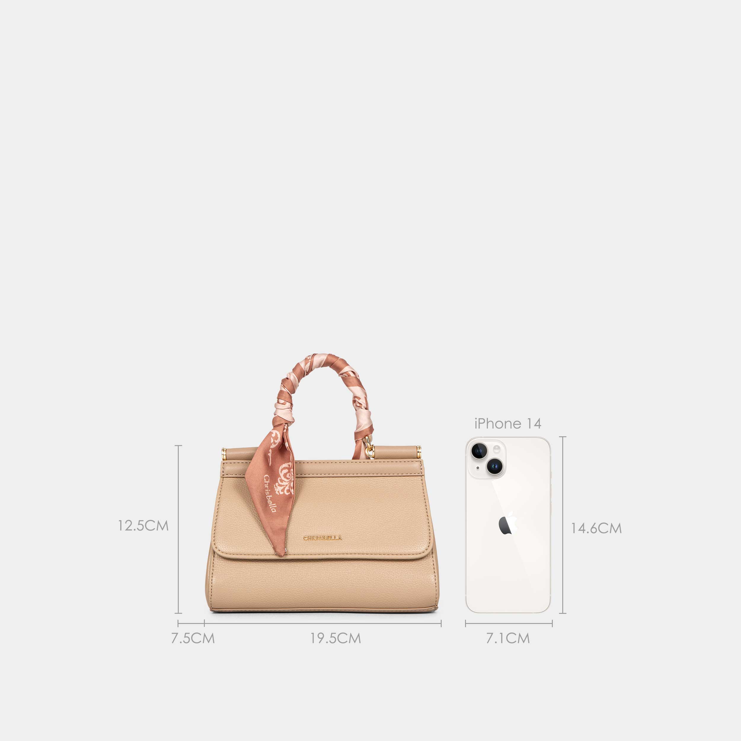 - 1. الحقيبة الكلاسيكية (The Classic Structure) قطعة فنية بتصميم هندسي متقن يحافظ على رونقه مع مرور الوقت. تتميز بوشاح حريري فاخر يلتف حول المقبض ليضفي لمسة من الأنوثة الراقية والانسيابية. صممت لتكون رفيقتك المثالية في المناسبات الرسمية واليومية بمساحة رحبة وعملية.