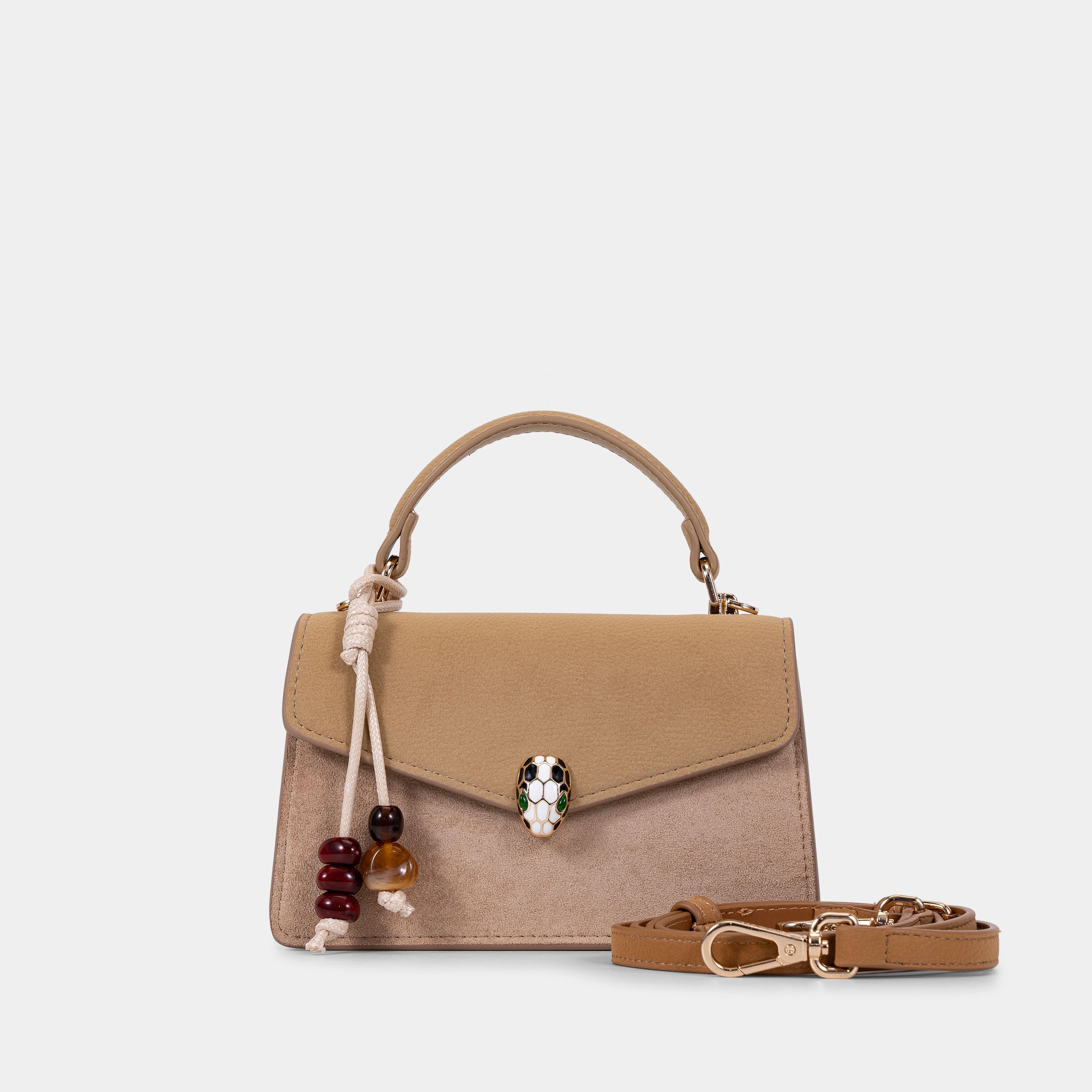 - تضيف الأجزاء المعدنية الذهبية على الجزء العلوي من حقيبة كرسيبيلا لمسة جمالية رائعة، كما أنها تعكس الأناقة والتميز.