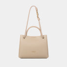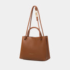 تتميز بتصميم أنيق ومتعدد الاستخدامات مع بنية من الجلد المتداخل، تفاصيل معدنية باللون الذهبي، مقبض علوي مثبت، حزام كروس، قسم داخلي عملي مع جيب بسحّاب وجيبين مفتوحين.