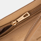 - يمكنك إغلاقها بسهولة باستخدام قلاب الإغلاق الأمامي المصمم بشكل جذاب. وعند فتحه ستجد داخل الحقيبة جزءًا مبطنًا بالقماش النمري.