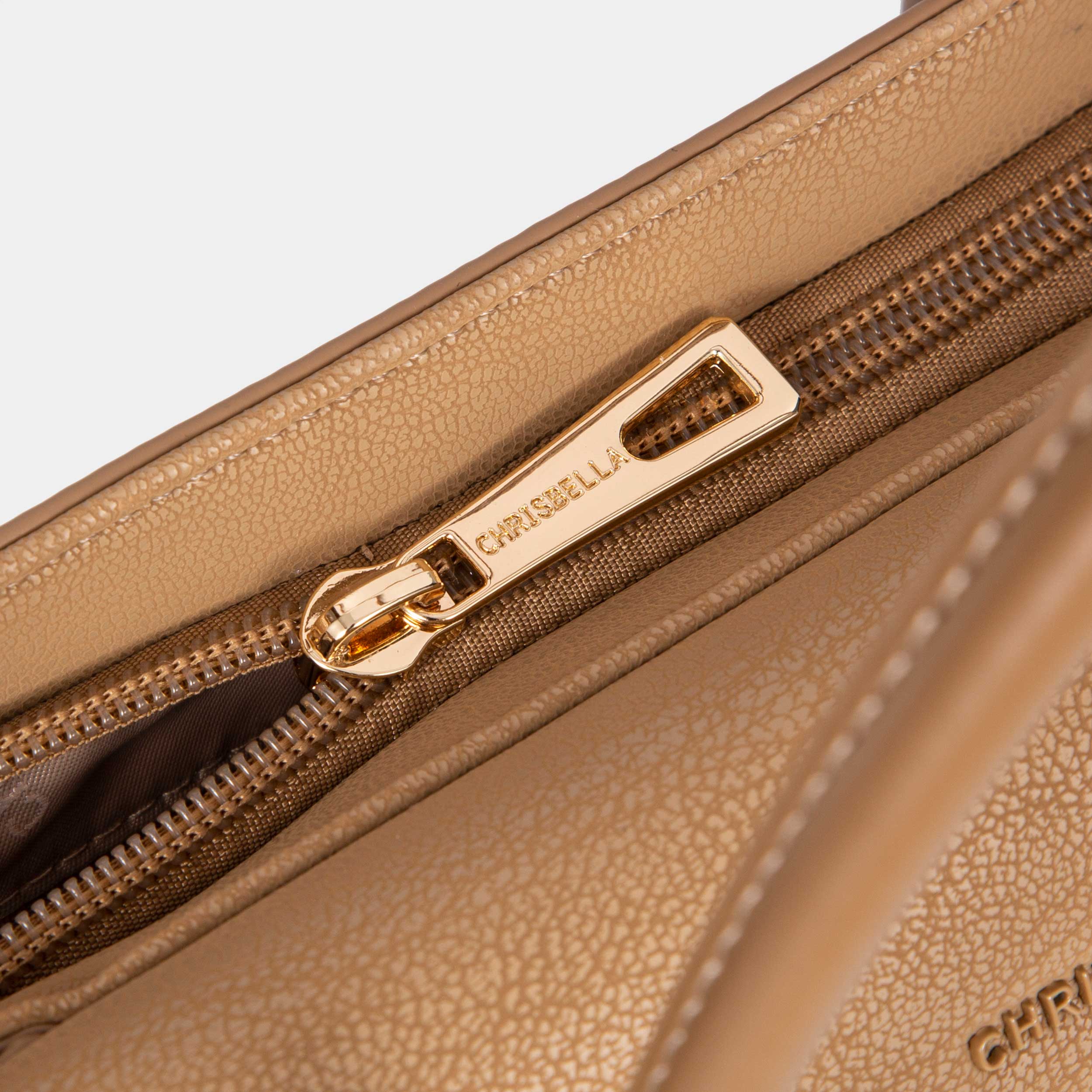 - تضيف الأجزاء المعدنية الذهبية على الجزء العلوي من حقيبة كرسيبيلا لمسة جمالية رائعة، كما أنها تعكس الأناقة والتميز.