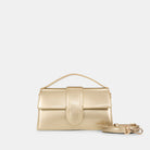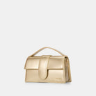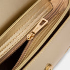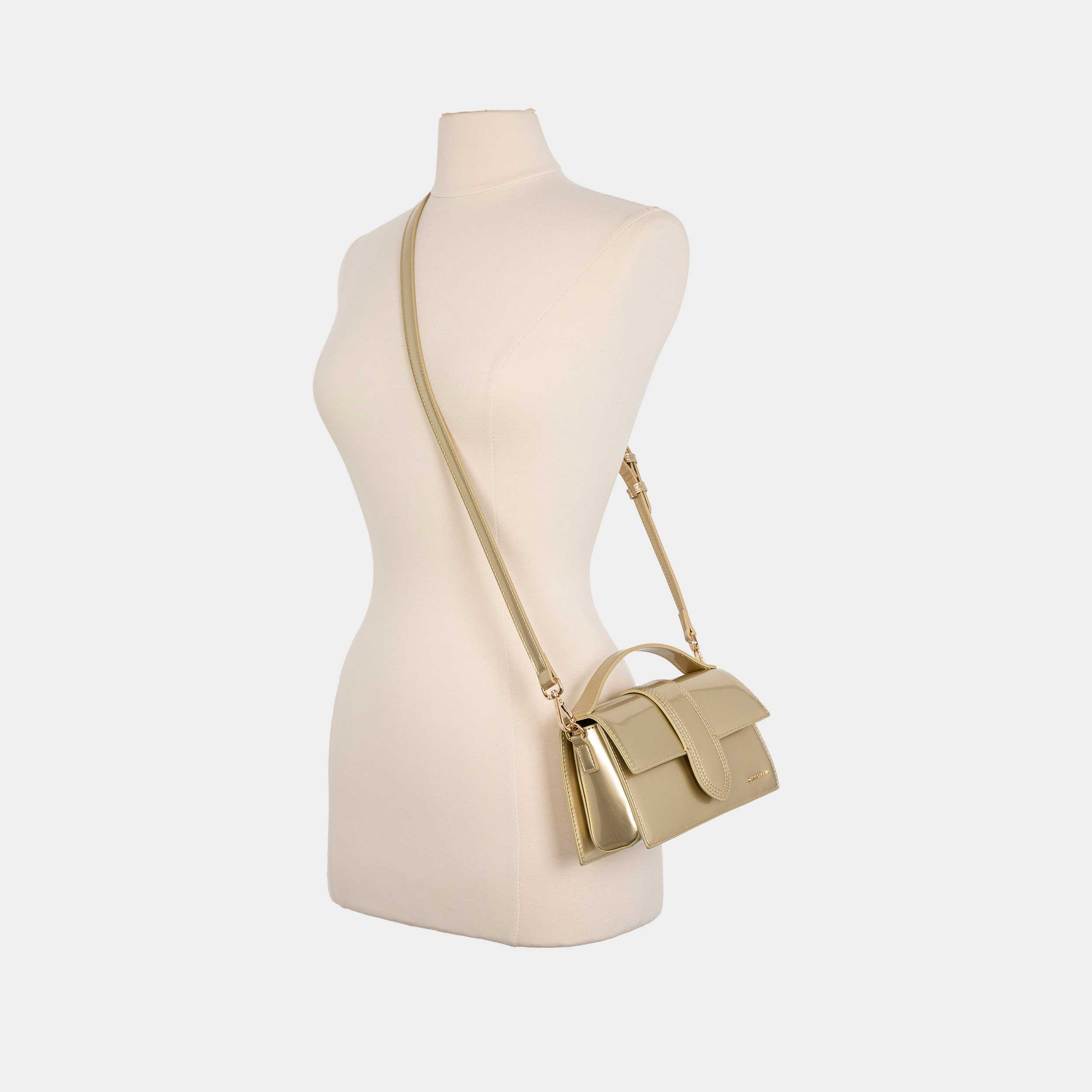 تتميز بتصميم أنيق ومتعدد الاستخدامات مع بنية من الجلد المتداخل، تفاصيل معدنية باللون الذهبي، مقبض علوي مثبت، حزام كروس، قسم داخلي عملي .