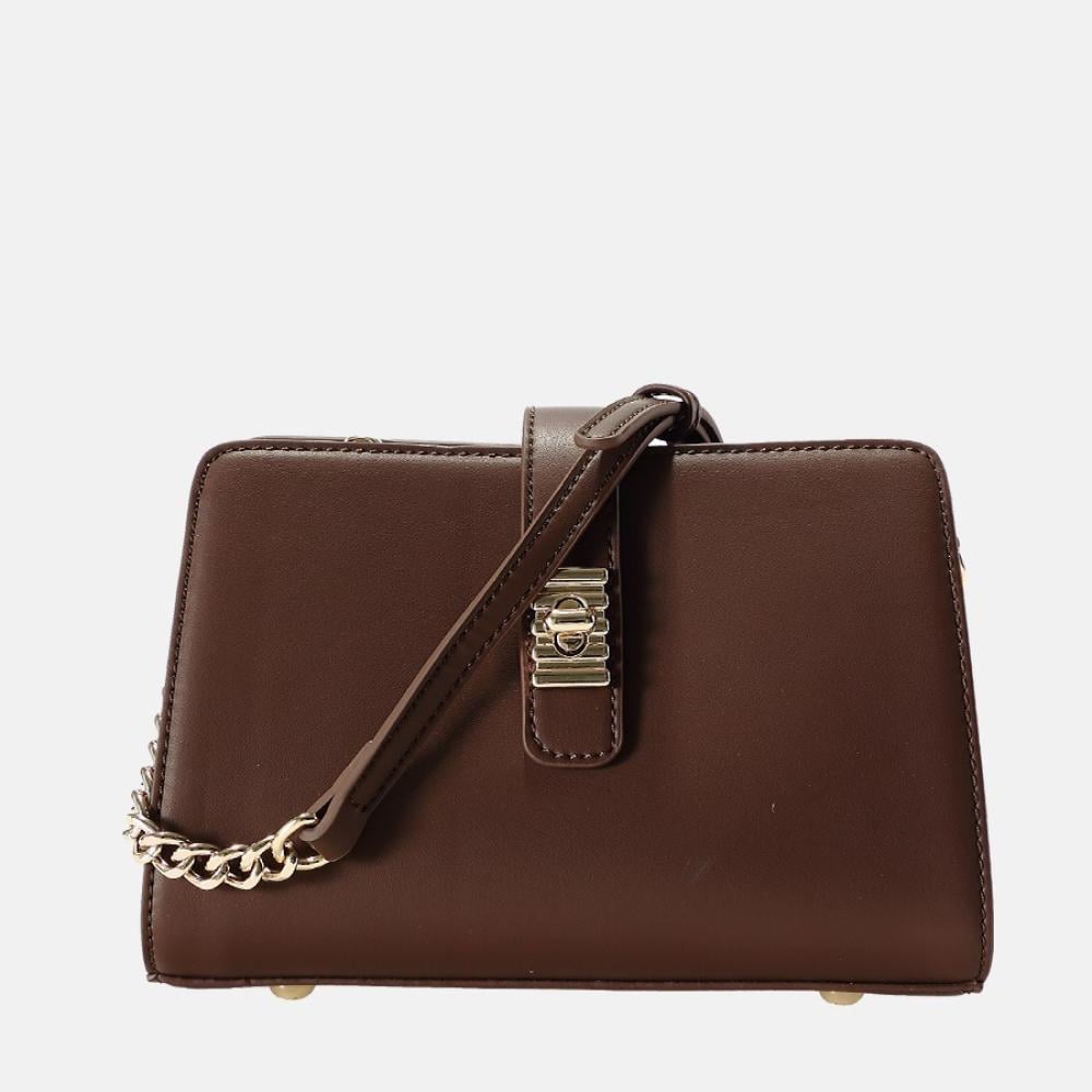تتميز بتصميم أنيق ومتعدد الاستخدامات مع بنية من الجلد المتداخل، تفاصيل معدنية باللون الذهبي، مقبض علوي مثبت، حزام كروس، قسم داخلي عملي .