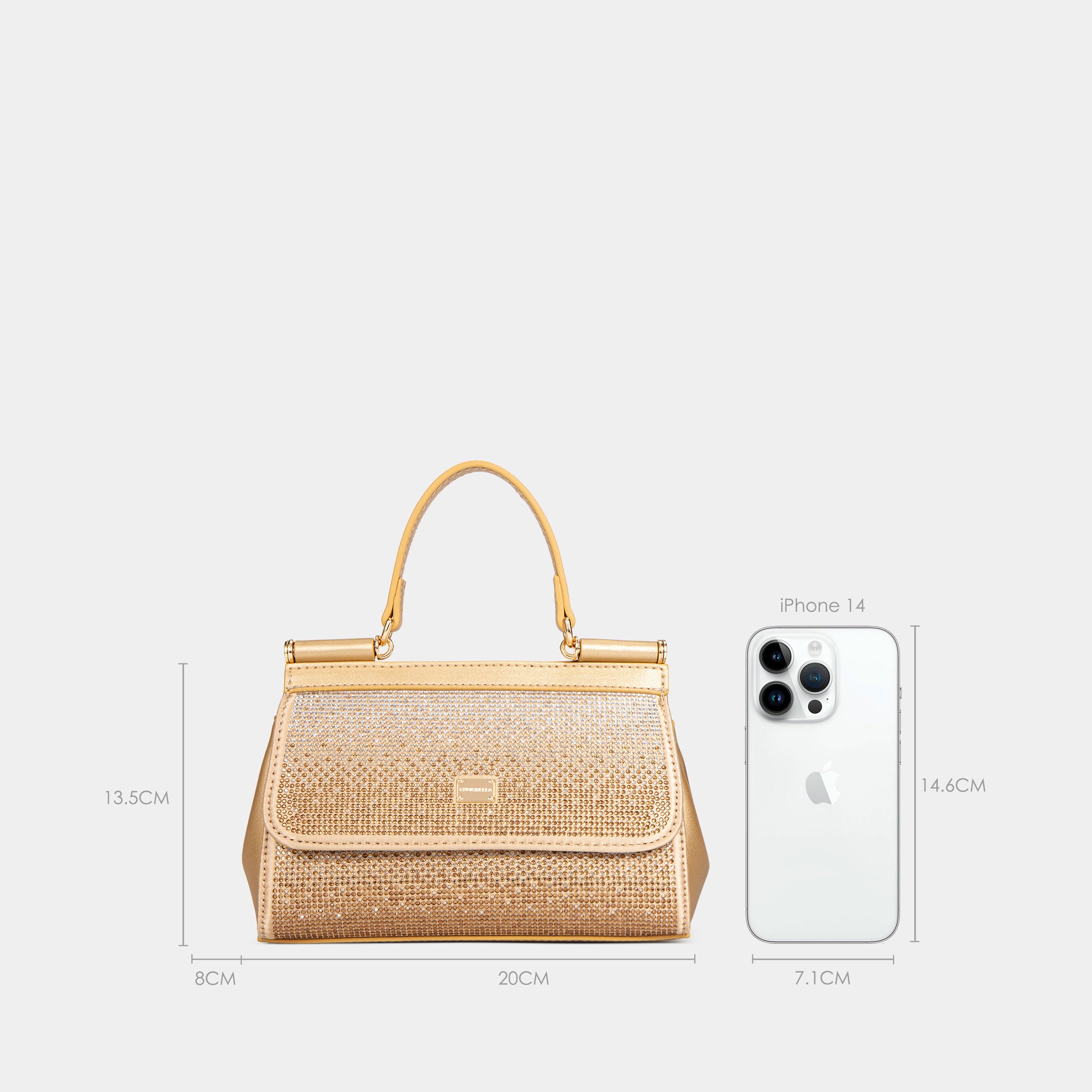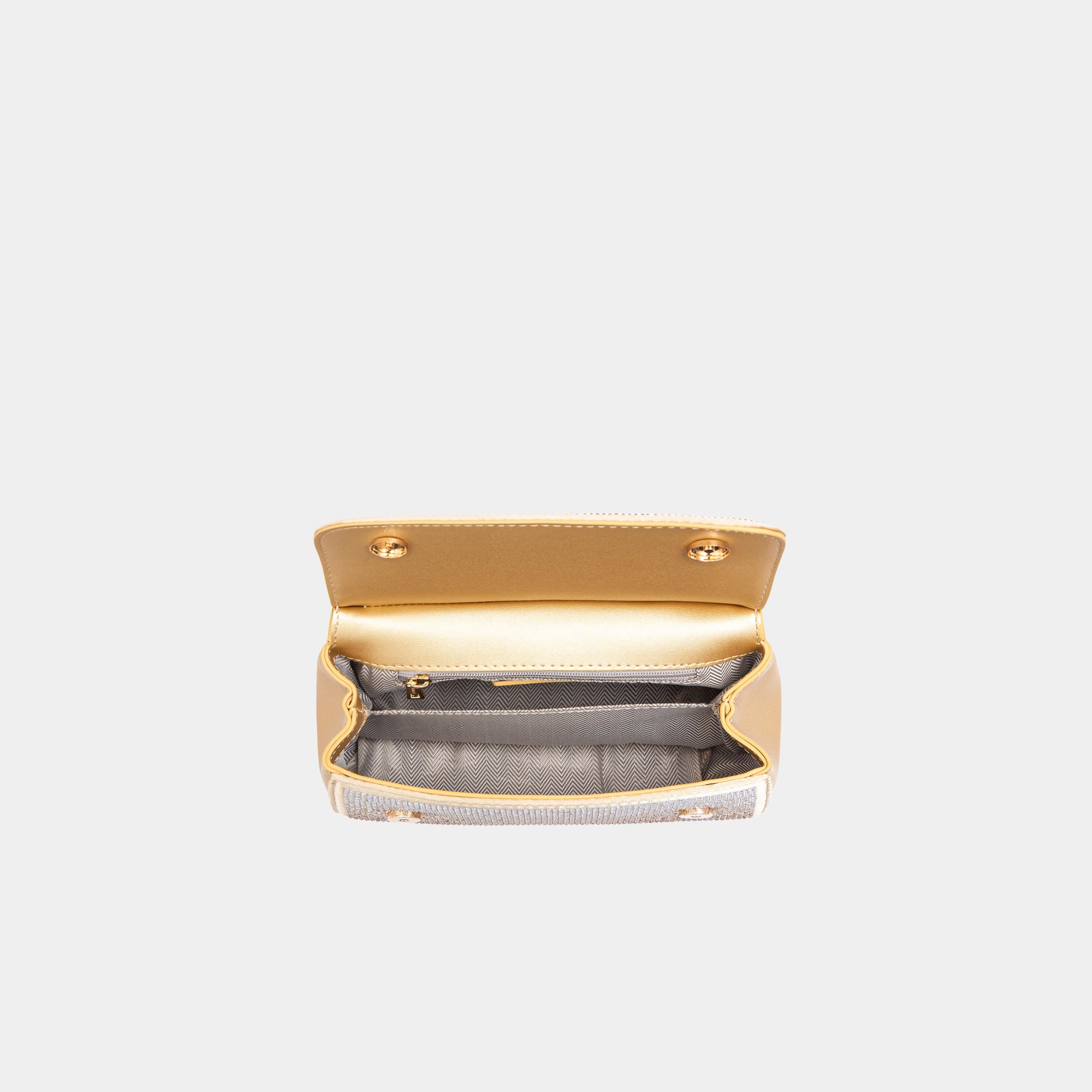 - تضيف الأجزاء المعدنية على الجزء العلوي من حقيبة كرسيبيلا لمسة جمالية رائعة، كما أنها تعكس الأناقة والتميز.
