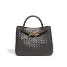 تتميز بتصميم أنيق ومتعدد الاستخدامات مع بنية من الجلد المتداخل، تفاصيل معدنية باللون الذهبي، مقبض علوي مثبت، حزام كروس، قسم داخلي عملي مع جيب بسحّاب وجيبين مفتوحين.